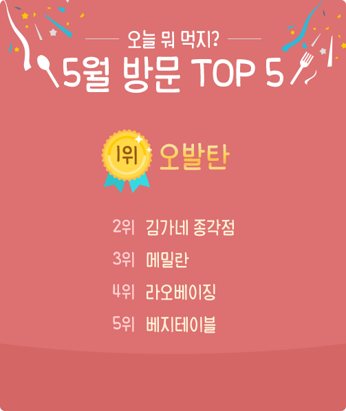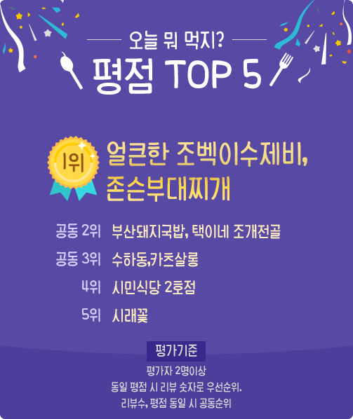 ¸ÅÀÏ Á¡½É ½Ã°£¿¡ ¸Þ´º¼±ÅÃÀÌ °í¹ÎÇϼ̴ø ºÐµé ¸¹À¸¼ÌÁÒ? ±ÝÈ£°Ç¼³ ±¸¼º¿øµéÀÌ Á÷Á¢ ½Ä´çÀ» Æò°¡ÇÏ´Â '¿À´Ã ¹¹ ¸ÔÁö?' Äڳʸ¦ ÁغñÇß½À´Ï´Ù. ¿©·¯ºÐÀÌ µå½Å ½Ä´ç¿¡ ´ëÇÑ º°Á¡°ú ¸®ºä¸¦ ³²°ÜÁÖ¼¼¿ä. ¾ËÂù ¸®ºä¸¦ ³²°ÜÁֽŠºÐ²²´Â ¼ÒÁ¤ÀÇ ¼±¹°À» µå¸³´Ï´Ù!